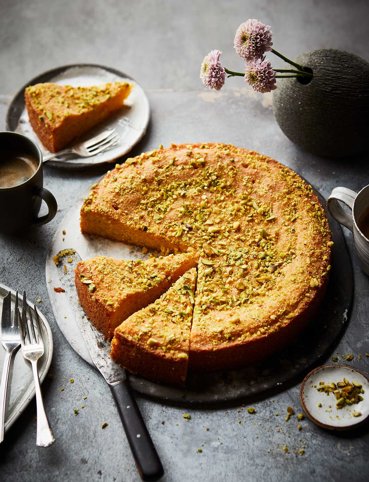 This gluten-free flourless citrus cake is made using polenta and ground almonds.